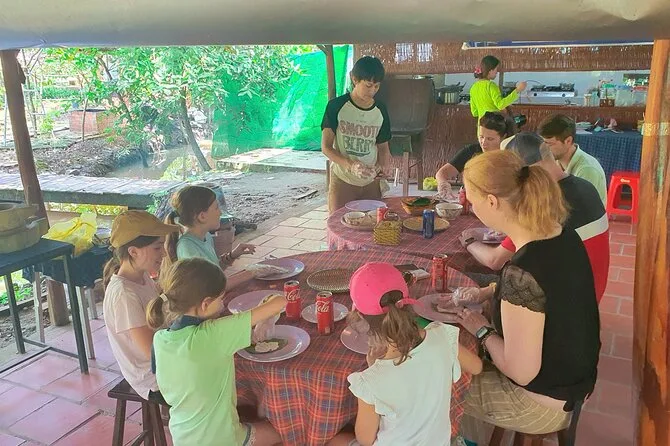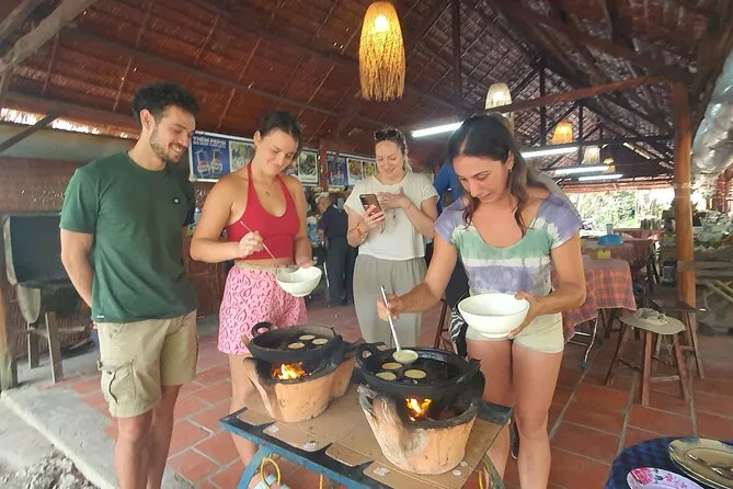 Dein Tag beinhaltet einen englischsprachigen lokalen Guide, Eintritt zu allen Stationen, Frühstück auf dem Boot (mit Fleisch- und vegetarischen Optionen), vietnamesischen Kaffee oder Tee, tropische Früchte während der Pause am Fluss, praktisches Bánh Khọt Kochen mit lokalen Zutaten sowie den Rücktransfer per Boot in die Innenstadt vor Mittag.