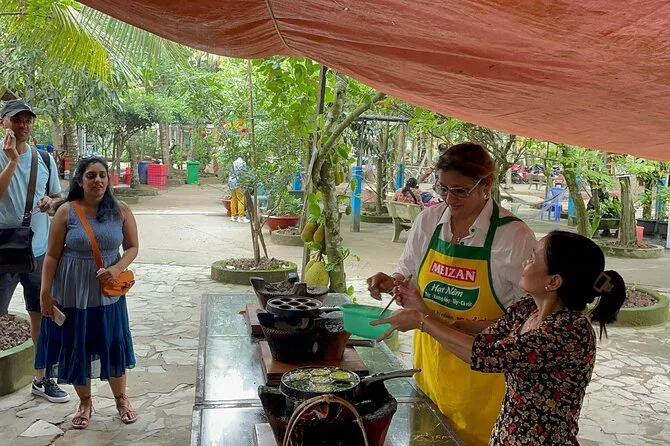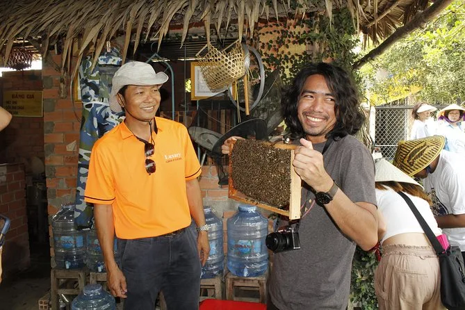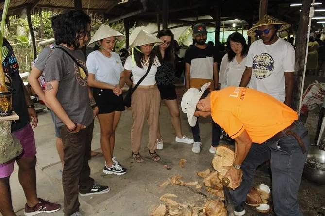 Du fährst mit Motor- und Ruderbooten durch Kanäle, probierst lokale Früchte und Honigtee, siehst traditionelle Musikdarbietungen und fährst mit Tuk Tuk oder Elektroauto durch das Dorf.
