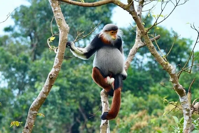 Der Fokus liegt auf roten Douc-Languren; außerdem kannst du Vögel, Schmetterlinge, Pflanzen und manchmal Mangusten entdecken.