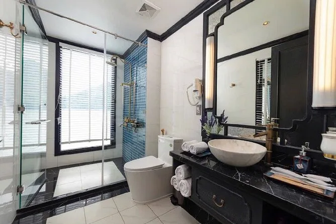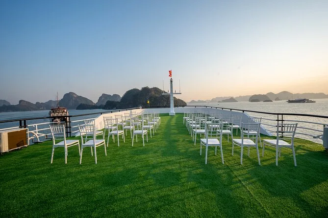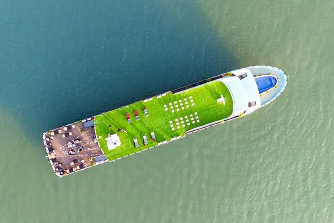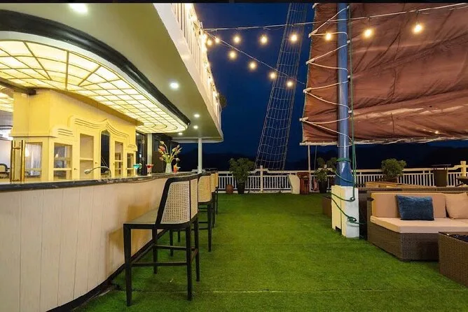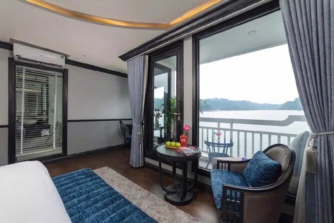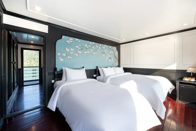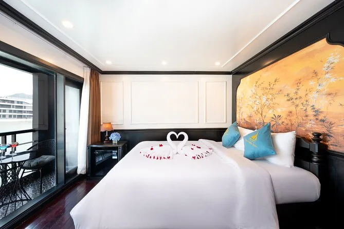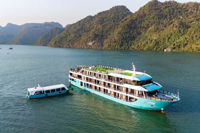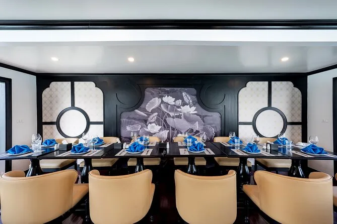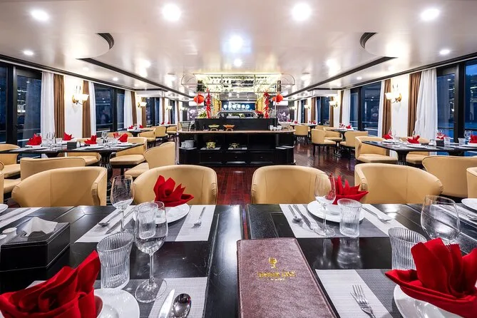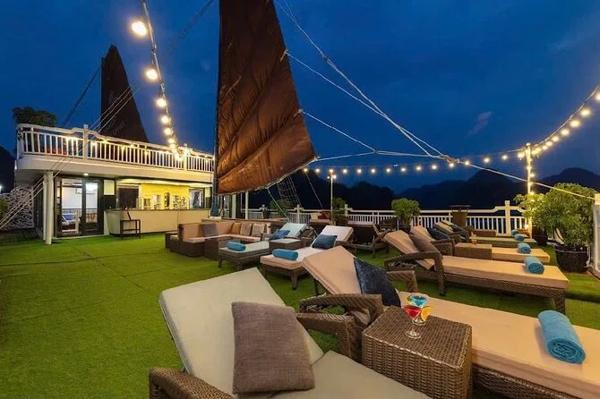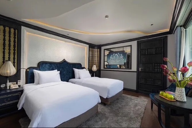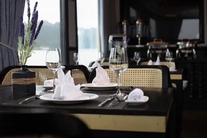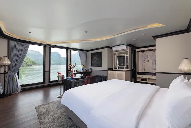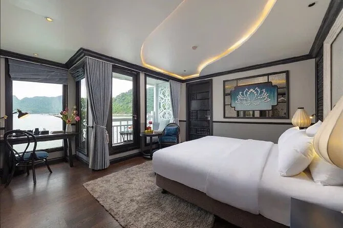Deine Reise beinhaltet Hin- und Rücktransfer über die Schnellstraße von Hotels im Altstadtviertel Hanoi, Eintritt zur Dark & Light Cave sowie Kajakausrüstung, eine Nacht in einer privaten Kabine mit Meerblick, Balkon und eigenem Bad an Bord der Lotus Cruise (insgesamt 16-18 Kabinen), alle Mahlzeiten inklusive vietnamesischem Seafood-Mittag- und Abendessen sowie Frühstück und Getränke wie Tee oder Kaffee auf der Kabine. Außerdem begleitet dich ein englischsprachiger lokaler Guide mit Aktivitäten wie Tai Chi bei Sonnenaufgang, Kochkurs-Demonstrationen, Tintenfischangeln nach dem Abendessen oder Karaoke, falls du mutig bist, bevor es am späten Nachmittag zurück nach Hanoi geht.