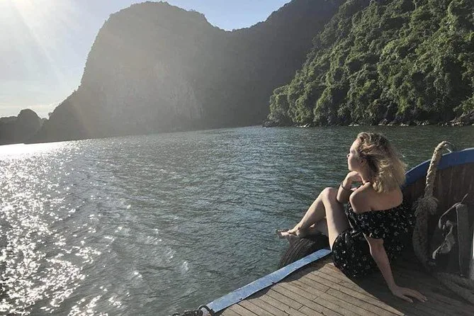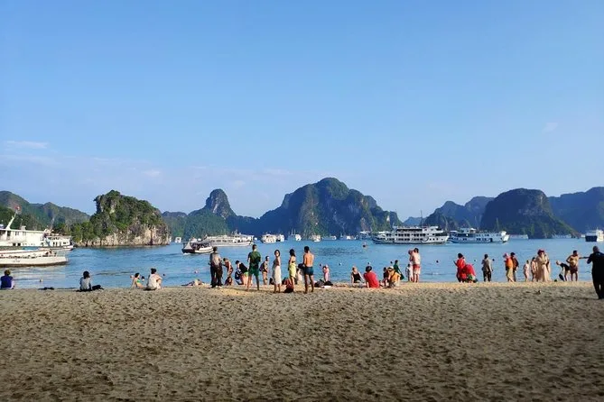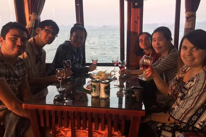 Dein Halong Bay Tagesausflug startet mit Abholung am Hotel in Hanoi, bevor du an Kalksteininseln vorbeisegelst, die Surprise Höhle erkundest, bei Luon Cave Kajak fährst oder entspannst und dann die Ti Top Insel für spektakuläre Panoramablicke erklimmst. Ein vietnamesisches Meeresfrüchte-Mittagessen an Bord rundet den Tag ab, bevor du den Sonnenuntergang über der Bucht genießt – ein Erlebnis, das lange nachklingt.