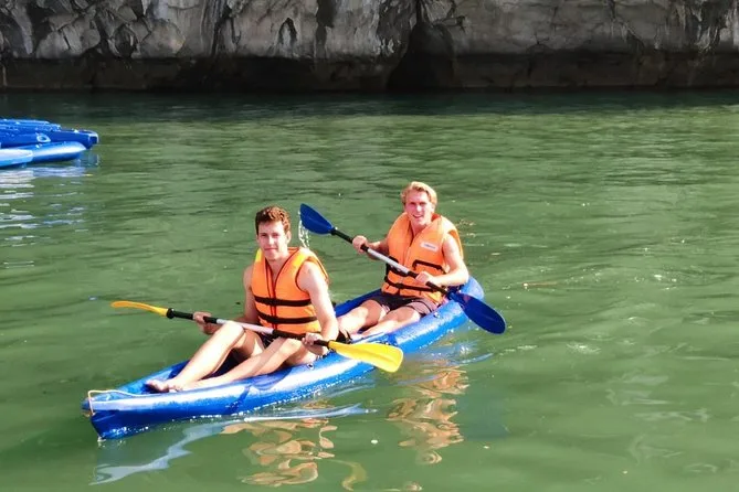 Dein Tag umfasst den Hin- und Rücktransfer vom Hotel im Altstadtviertel Hanoi mit klimatisiertem Bus, alle Eintrittsgelder für Halong Bay Highlights wie die Surprise Höhle und Ti Top Insel, Kajak- oder Bambusbootfahrt bei Luon Cave, einen englischsprachigen lokalen Guide während der Kreuzfahrt, WLAN an Bord (wenn du daran denkst) sowie ein vietnamesisches Meeresfrüchte-Mittagessen, während du an den wilden Kalksteinfelsen vorbeigleitest, bevor es abends zurück nach Hanoi geht.
