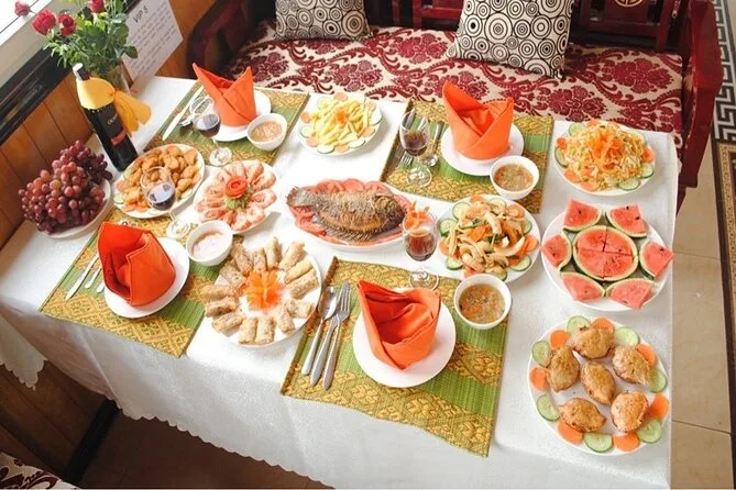 Ja, an Bord gibt es ein traditionelles vietnamesisches Mittagessen mit Meeresfrüchten.