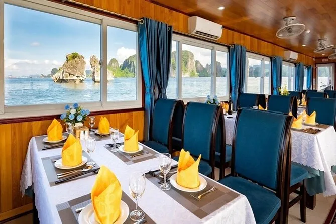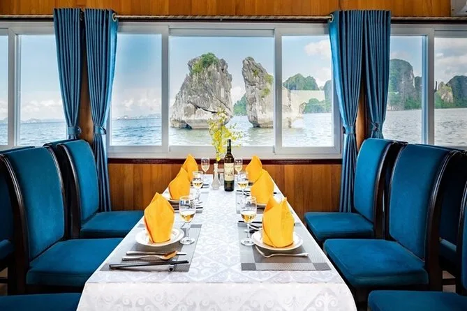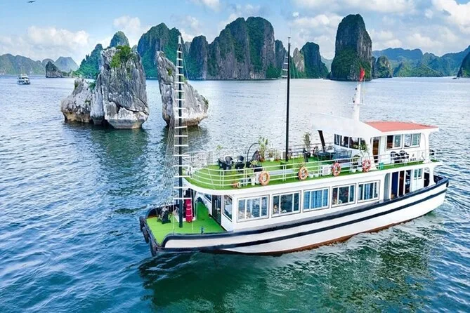Dein Tag startet mit Abholung vom Hotel im Altstadtviertel Hanoi im Limousinenbus, alle Eintrittsgelder für Höhlen und Inseln in der Halong Bucht, ein englischsprachiger lokaler Guide, der mit viel Charme begleitet (und bei der Aussprache hilft), Kajak- oder Bambusboot-Optionen an der Luon Höhle, sechs Stunden auf einem sauberen Deluxe-Boot und ein traditionelles vietnamesisches Mittagessen an Bord, bevor es bei Sonnenuntergang zurückgeht.