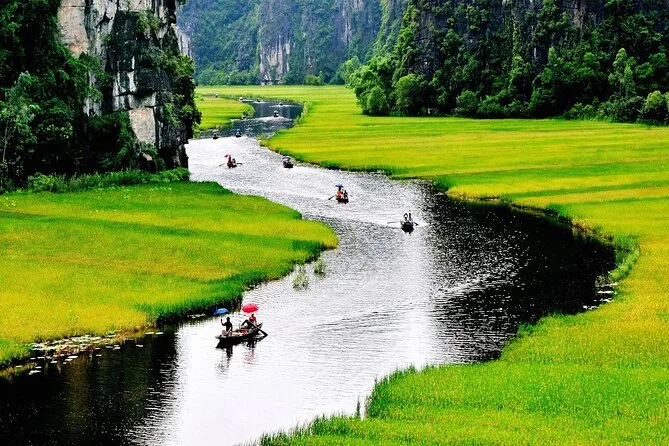 Dein Tag beinhaltet Abholung und Rückfahrt im Alten Viertel von Hanoi, alle Eintrittsgelder und Bootsfahrten, ein hausgemachtes vietnamesisches Mittagessen (auch vegetarisch), Fahrradtour durch lokale Dörfer, einen englischsprachigen Guide mit tiefem Ninh Binh-Wissen sowie drei Wasserflaschen pro Person für unterwegs.