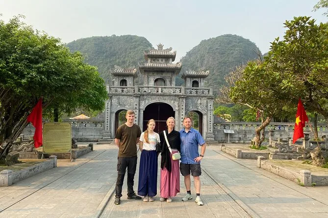 Am Nachmittag stiegen wir in kleine Sampan-Boote in Tam Coc. Eine Einheimische ruderte uns sanft mit den Füßen den Fluss hinunter (ich frage mich noch immer, wie sie das macht). Die Höhlen sind kühl und hallen nach, draußen flogen Libellen über das Wasser, das leicht nach Schlamm und Wildblumen roch. Zur Erntezeit leuchten die Reisfelder goldgelb – ein unvergesslicher Anblick. Zum Abschluss besuchten wir die alten Tempel von Hoa Lu, wo Minh spannende Geschichten über König Dinh erzählte, die vietnamesische Geschichte lebendig werden ließen – nicht nur trockene Fakten aus dem Buch.