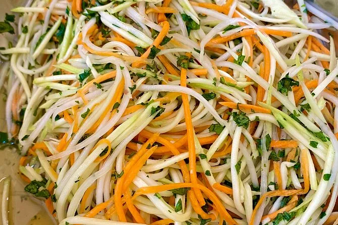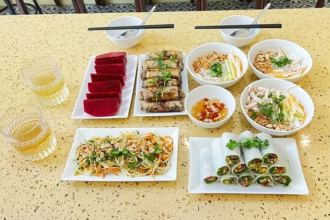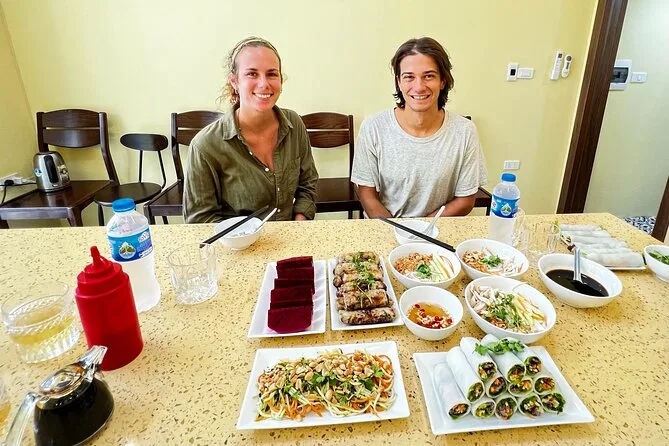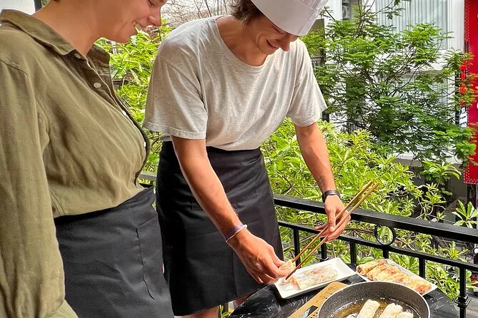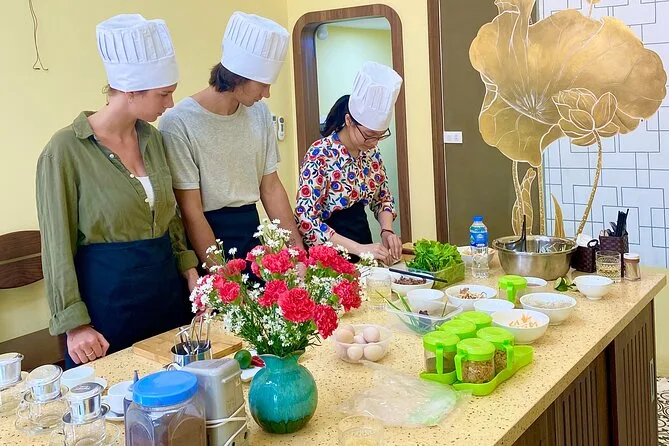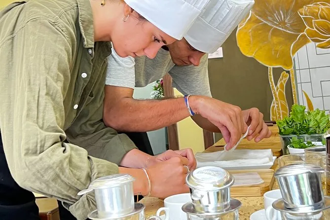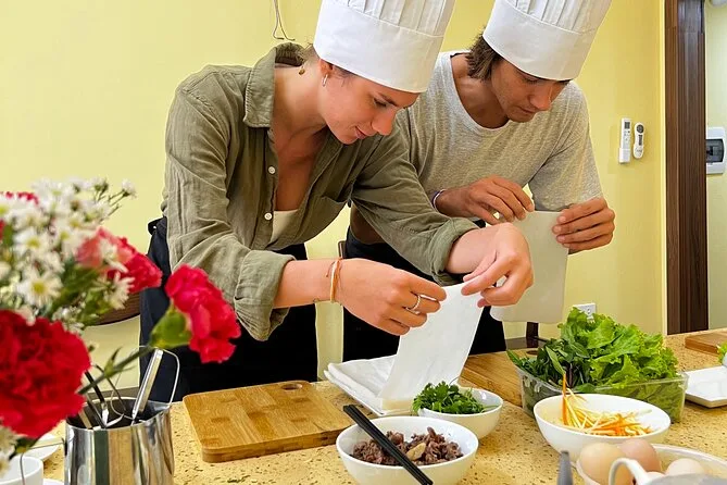 Erkunde mit einem lokalen Guide den lebhaften Markt im Hanoier Altstadtviertel, lerne klassische vietnamesische Gerichte wie knusprige Frühlingsrollen und Papayasalat zu kochen und probiere den berühmten vietnamesischen Eiskaffee. Freu dich auf viel Spaß in der Küche, neue Geschmackserlebnisse und ein Essen, das du nie vergisst.