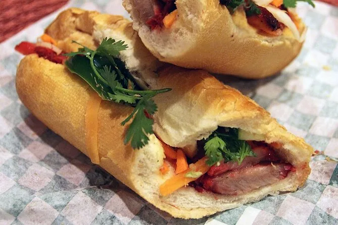 Du probierst Klassiker wie bún chả (gegrilltes Schweinefleisch mit Nudeln), phở trộn (trockene Phở), phở cuốn (frische Frühlingsrollen), bánh mì (vietnamesisches Baguette), kem xôi (Klebreis mit Eis) und Eierkaffee.