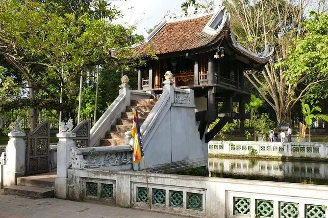 Dein Tag beinhaltet die Abholung im klimatisierten Fahrzeug (nach dem Laufen eine Wohltat), alle Eintrittsgelder z.B. für das Hoa Lo Gefängnismuseum und die Ein-Säulen-Pagode, reichlich kaltes Wasser unterwegs sowie Getränke wie Bier oder Sprudelwasser nach Wunsch – dazu Stopps für traditionellen Tee und Süßigkeiten mit Einheimischen, bevor es zurück ins Stadtleben geht.