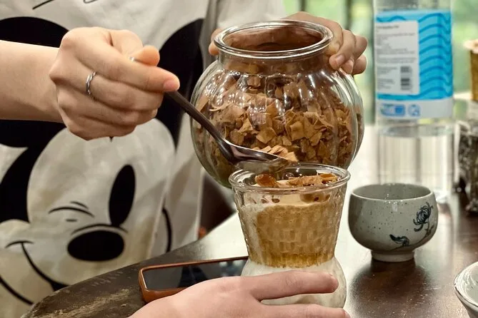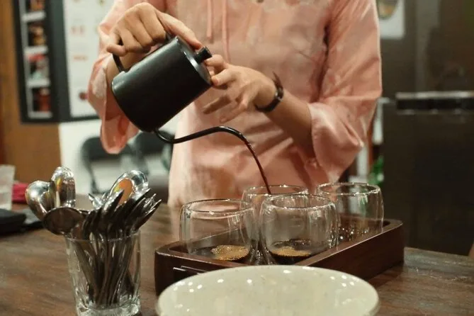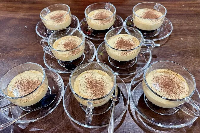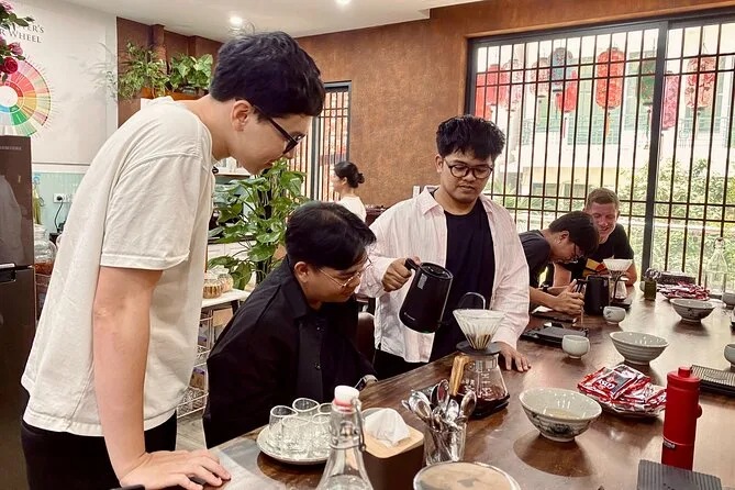 Dein Tag umfasst eine kostenlose Abholung im Old Quarter von Hanoi, eine lokale Barista, die Geschichten aus Vietnams Kaffeehochland erzählt, während ihr gemeinsam sechs typische Kaffees zubereitet (darunter Ei, Salz und Kokos), hausgemachte Snacks mit Kräutertee zum Empfang, Verkostungen von hausgemachten Reisschnaps-Cocktails, digitale Rezeptbücher zum Nachmachen zuhause – und auf Wunsch ein professionelles Zertifikat.
