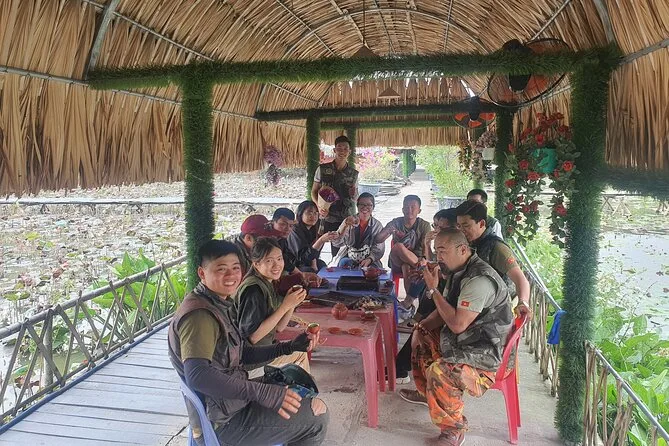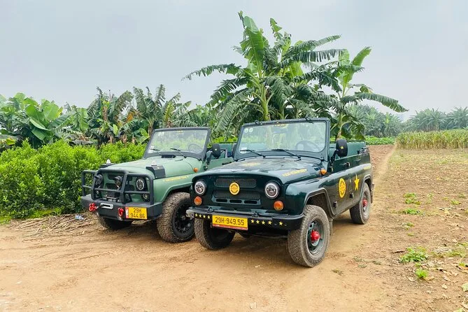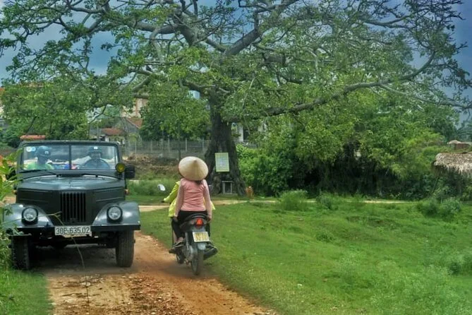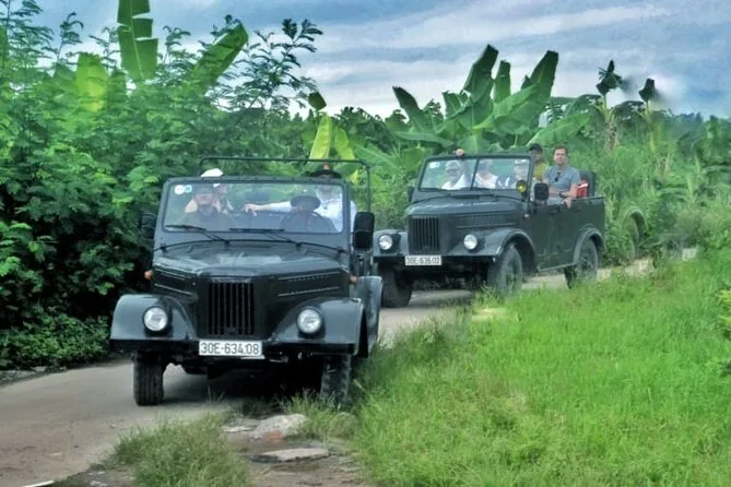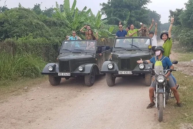 Dein Tag beinhaltet Abholung und Rückfahrt vom Hotel im Altstadtviertel Hanoi, Eintritt zu Sehenswürdigkeiten wie Co Loa Zitadelle oder Bat Trang Dorf, alle Mahlzeiten und Getränke (inklusive veganer/vegetarischer Optionen), Regencapes bei Bedarf, einen erfahrenen englischsprachigen Guide, der dich im klassischen Vietnam-Armee-Jeep begleitet (Kraftstoff inklusive) sowie Zeit für Marktbesuche oder praktische Handwerksaktionen, bevor es gemeinsam zurück in die Stadt geht.