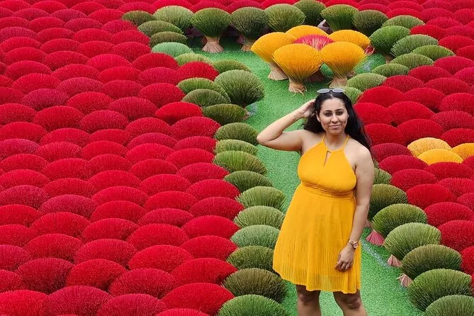 Minh übersetzte Geschichten der Dorfbewohner über das Aufwachsen umgeben von Räucherstäbchenrauch und wie jede Familie hier ihre eigene Duftmischung hat. Das fühlte sich viel persönlicher an, als ich bei einer Halbtagestour von Hanoi erwartet hätte. Wir machten viele Fotos (konnte man kaum vermeiden), aber ehrlich gesagt waren es die kleinen Momente – jemand, der uns Tee anbot, Kinder, die zwischen den Bündeln herumtollten – die mir am meisten im Gedächtnis blieben. Und plötzlich war es Zeit zurückzufahren, mit Räucherstäbchenstaub an den Ärmeln und dem Gefühl, für ein paar Stunden in einen ganz anderen Alltag eingetaucht zu sein.