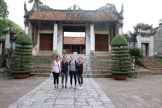 Nach einer Runde um den Westsee mit weitem Blick (und einem kurzen Fotostopp am Phu Tay Ho Tempel) fuhren wir an Blumenfarmen vorbei – je nach Saison blühten Lotus oder bunte Winterblumen – und machten Halt bei zwei Drachenskulpturen, die zum 1000-jährigen Jubiläum Hanois errichtet wurden. Bei der Van Nien Pagode erzählte Minh von ihrer tausendjährigen Geschichte, während der Duft von Räucherstäbchen aus dem Inneren zog.