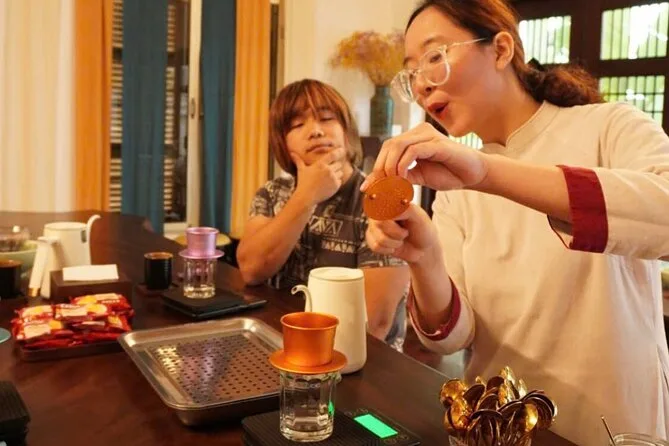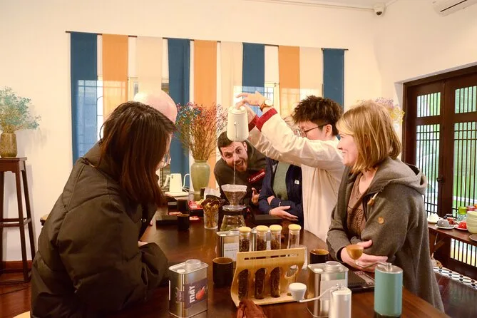 Du tauchst direkt in Hanois lebendige Kaffeekultur ein – frische Bohnen riechen, sechs verschiedene Zubereitungen ausprobieren (Eierkaffee ist ein Erlebnis), hausgemachte Fruchtliköre probieren und mit lokalen Experten in einer lichtdurchfluteten Villa lachen. Hands-on Spaß und Geschmackserlebnisse, die du so schnell nicht vergisst.