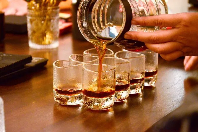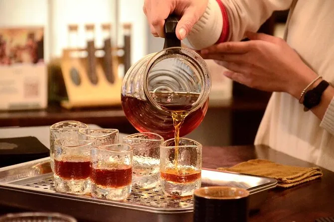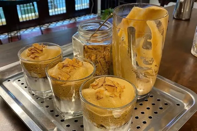 Dein Tag beinhaltet unbegrenzt Mineralwasser, einen kostenlosen Kräuter-Willkommensdrink bei Ankunft, persönliche Butler-Betreuung während des Workshops, kostenfreie Gepäckaufbewahrung bis zu drei Tage, alle nötigen Utensilien für die praktische Zubereitung von sechs ikonischen vietnamesischen Kaffees (wie Eier- und Kokoskaffee), mehrere Verkostungen traditioneller hausgemachter Fruchtliköre, dazu leckeres lokales Gebäck in einer klimatisierten Villa mit leidenschaftlichen Kultur-Storytellern, die fließend Englisch sprechen.