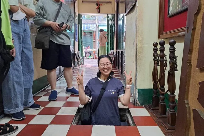 Danach ging es in ein winziges Café – so ein Ort mit Plastikstühlen, wo die Einheimischen um 8 Uhr morgens schon tief im Gespräch waren. Der Kaffee war dick und süß, ich habe ihn wohl zu schnell getrunken. Unser Guide führte uns dann durch eine Gasse zu einem alten Kriegsbunker – von außen unscheinbar, doch drinnen roch es kühl nach Metall und Staub. Unglaublich, wie viel Geschichte hier verborgen liegt.