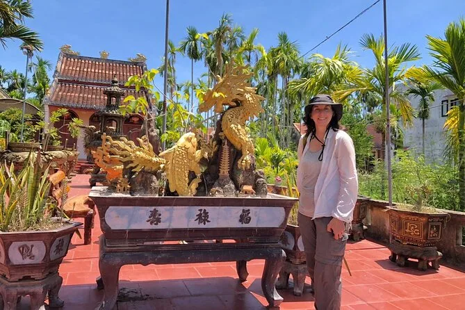 Ich denke noch oft an den Spaziergang durch Duy Vinh – Hühner, die unter den Füßen davonhuschten, jemand, der an einem kleinen Tempel am Wasser Räucherstäbchen anzündete. Es war nicht touristisch oder inszeniert, einfach Menschen bei ihrem Alltag, während wir vorbeigingen. Auf dem Rückweg verteilte Minh kalte Getränke und zeigte auf einen Eisvogel, der blau über den Fluss blitzte. Meine Arme waren müde, aber auf die gute Art – man weiß, dass man später tief schlafen wird. Wer von Hoi An aus einen echten, entspannten Tagesausflug sucht, der nicht hektisch oder touristisch ist, ist hier genau richtig.