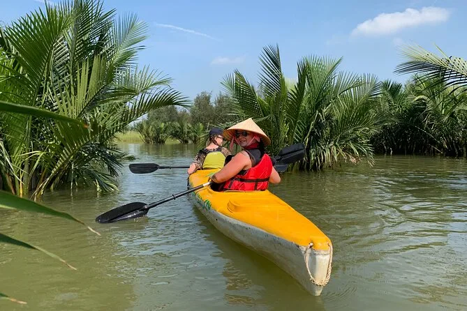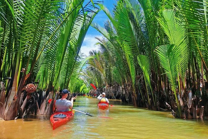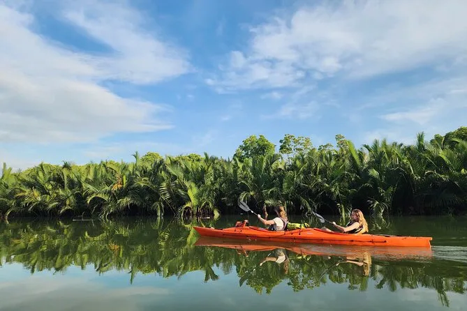 Erkunde mit einem lokalen Guide den Cocopalm-Wald von Cam Thanh per Kajak, gleite durch stille Gewässer bis zum Dorf Duy Vinh, triff Handwerker, die Schilfmatten von Hand weben, und genieße auf der Rückfahrt erfrischende Getränke. Ein sanftes Abenteuer mit ehrlichen Momenten, die lange nachwirken.