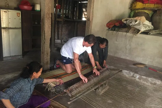 Du schlenderst durchs Dorf, triffst Einheimische und lernst die traditionelle Schilfmatten-Weberei kennen.