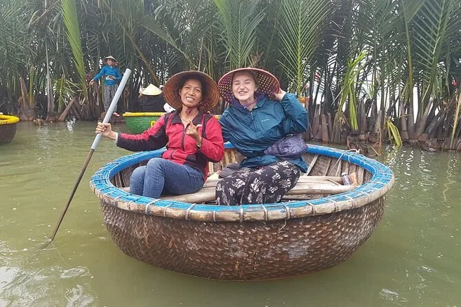 Dein Tag beinhaltet den kostenlosen Hoteltransfer in Hoi An, Eintritt zum Cam Thanh Nipa-Palmenwald, Nutzung der Korbboote mit Schwimmwesten, Wasserflaschen für die Erfrischung unter Palmen, einen traditionellen vietnamesischen Bambushut (Non La) zum Sonnenschutz und die Begleitung freundlicher lokaler Fischer, die dich Schritt für Schritt anleiten.