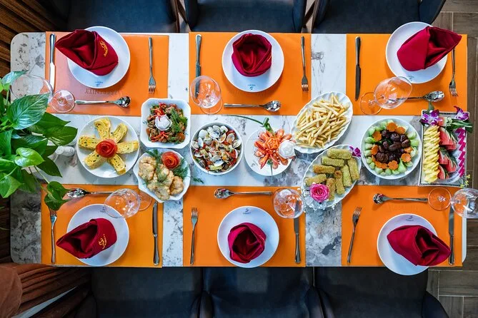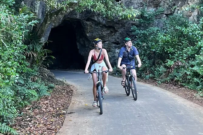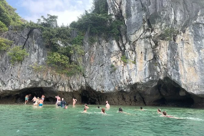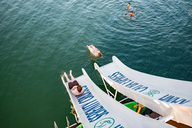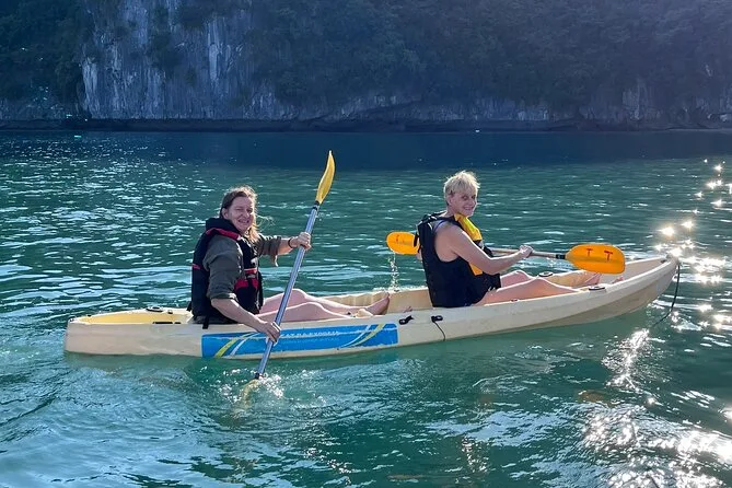 Die Tour umfasst Kajakfahren, Schwimmen, Sprünge vom Boot, Rutschen vom Oberdeck, Rad- oder Elektroauto-Fahrt im Viet Hai Dorf und eine Fisch-Fußmassage.