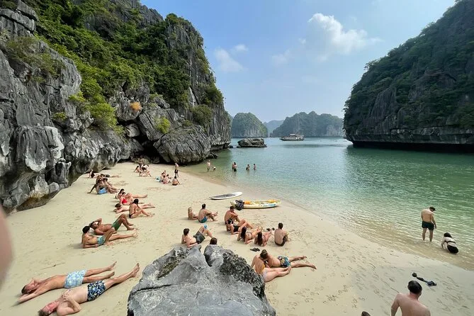 Du verlässt Hanoi für einen ganzen Tag in der Lan Ha Bucht – Kajakfahren im smaragdgrünen Wasser, Schwimmen vom Boot, Rad- oder Elektroauto-Tour durchs Viet Hai Dorf und gemeinsames Lachen beim Mittagessen mit neuen Freunden. Die Momente sind entspannt und echt; vielleicht traust du dich sogar, in die Bucht zu springen oder unterwegs mit Einheimischen zu plaudern.