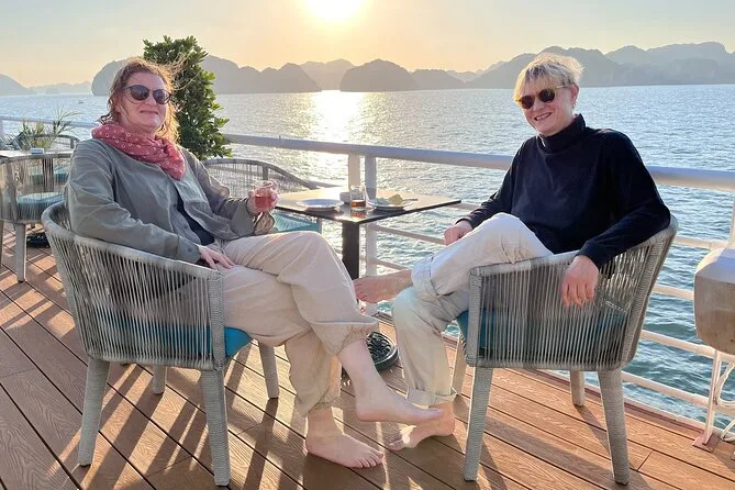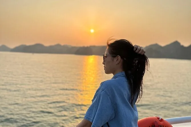 Nach dem Mittagessen legten wir im Viet Hai Dorf an. Mit dem Rad durch die engen Pfade zwischen Palmen zu fahren, fühlte sich fast unwirklich an – Hühner rannten kreuz und quer, alte Männer winkten von ihren Veranden. Es gab diesen lustigen Moment, als wir die Füße in Becken mit Fischen tauchten, die die Haut massieren – es kitzelte mehr, als dass es half, aber alle lachten wie Kinder. Später paddelten wir mit dem Kajak unter den Kalksteinbögen der Lan Ha Bucht – das Wasser war so grün, dass es auf Fotos fast unecht aussah – und manche sprangen einfach vom Boot ins Wasser, weil sie konnten. Ich zögerte erst, sprang dann aber auch rein (kurzer Kälteschock, dann pure Freude). Die Sonne ging schnell unter und tauchte die zerklüfteten Inseln in goldenes Licht. Manchmal denke ich noch an diesen Ausblick, wenn ich in der U-Bahn auf dem Heimweg sitze.