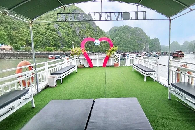 Dein Tag startet mit der Abholung vom Hotel in Cat Ba oder Hanoi (oder Treffpunkt im Büro), alle Eintrittsgelder für Lan Ha & Ha Long Bay sind inklusive, ebenso die Nutzung von Kajaks und Sicherheitsausrüstung wie Schwimmwesten und Stirnlampen für die Höhlen. Schnorchelausrüstung gibt’s, wenn du möchtest, und zum Mittagessen frische Meeresfrüchte oder vegetarische Gerichte. Vor der Rückfahrt gibt’s Kaffee und Snacks auf dem Deck.