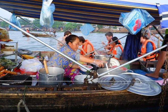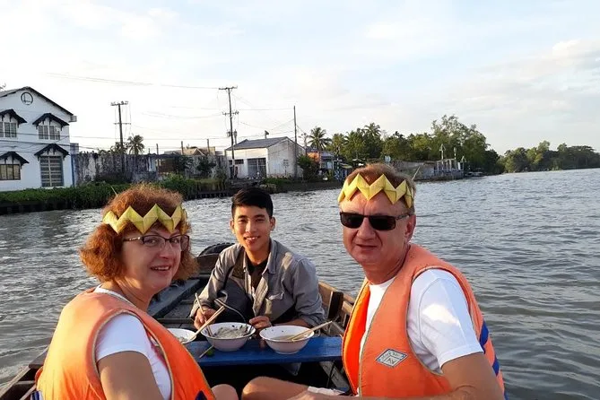 Dein Tag beinhaltet die Abholung und Rückfahrt zum Hotel in Can Tho, alle Eintrittsgebühren, einen englischsprachigen lokalen Guide, der auf dem Fluss alle kennt (oder zumindest so tut), ein traditionelles Frühstück mit Getränken wie Kokoswasser oder starkem vietnamesischem Kaffee direkt auf dem Boot am Cai Rang Markt, frische saisonale Obstproben im Obstgarten, Snacks unterwegs und sogar einen Besuch in einer funktionierenden Reisnudelfabrik, bevor es zurückgeht.