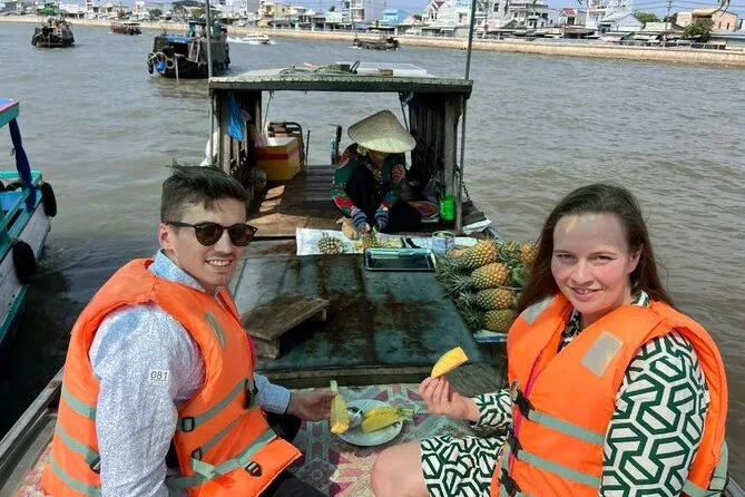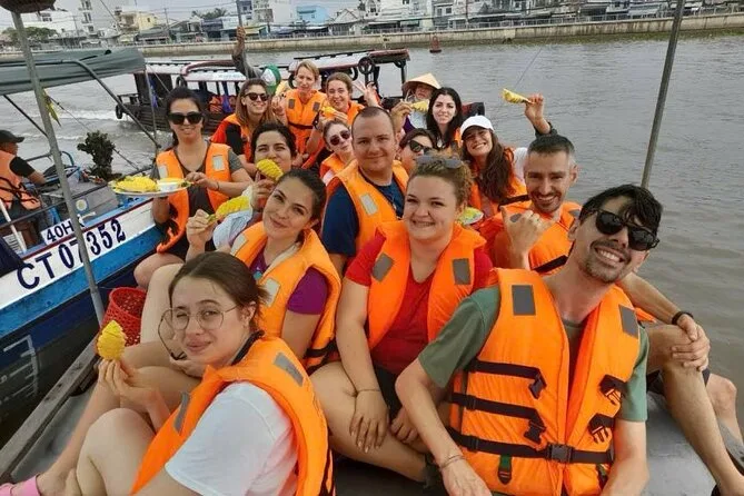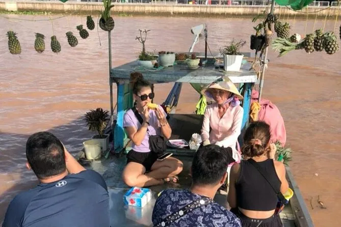 Ich denke immer noch gern an das Sitzen unter Strohdächern, während wir Honigtee tranken und eine Gruppe in der Nähe Volksmusik spielte. Die Sängerin hatte eine sanfte Stimme, die sich über das Gemurmel erhob – sie lächelte uns an, als wüsste sie, dass wir Touristen sind, aber das störte sie nicht. Wir probierten frische Früchte (Drachenfrucht schmeckt hier viel besser) und sahen zu, wie Kokosnussbonbons von Hand hergestellt wurden. Nach dem Mittagessen fühlte sich die Radtour durch den Kokoshain richtig entspannt an; niemand hetzte uns, nicht mal, als ich hinterherfuhr und das Licht beobachtete, das durch die Palmenblätter auf dem Fluss tanzte. Also ja, wenn du eine Mekong Delta Tour suchst, die nicht nur zum Abhaken ist, sondern wie ein Spaziergang in einen fremden Nachmittag – dann ist das hier genau richtig.