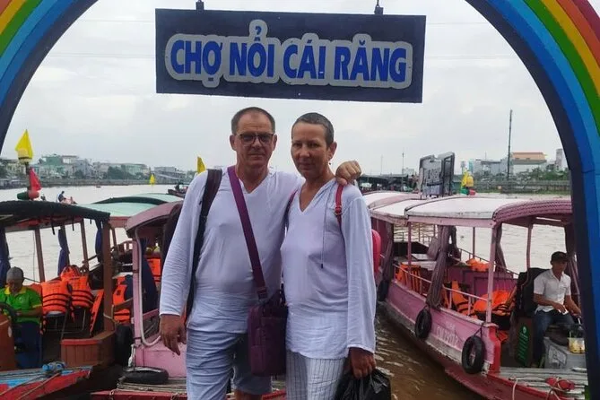 Dein Tag beginnt mit der Abholung vom Hotel in den zentralen Bezirken von Ho-Chi-Minh-Stadt. Anschließend fährst du mit einem klimatisierten Minivan oder Bus nach My Tho. Alle Eintrittsgelder, auch für die Vinh Trang Pagode, sind inklusive. Du erlebst Motorbootfahrten auf dem Mekong und Sampan-Touren durch kleine Kanäle, die von Hand gerudert werden. Eine Tuk Tuk- oder Elektrowagenfahrt führt dich durch Dorfstraßen, dazu gibt es Zeit zum Radfahren durch Kokoshainen. Kulinarisch erwarten dich bánh khọt, die du mit einem lokalen Koch zubereitest, Honigtee mit saisonalen Früchten (vier Sorten), Kokosnussbonbons und ein komplettes vietnamesisches Mittagsmenü – auch vegan möglich. Ein traditionelles Musikprogramm rundet den Besuch ab, bevor du zurück in den Bezirk 1 gebracht wirst.