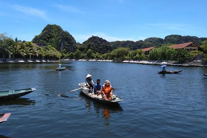 Verlasse Hanoi für einen Tag und entdecke die alten Tempel von Hoa Lu, radle durch leuchtend grüne Reisfelder, gleite unter Kalksteinfelsen auf dem Tam Coc Fluss und erklimme den Drachenberg für atemberaubende Ausblicke – alles inklusive Mittagessen und mit einem lokalen Guide, der jede Geschichte lebendig macht.