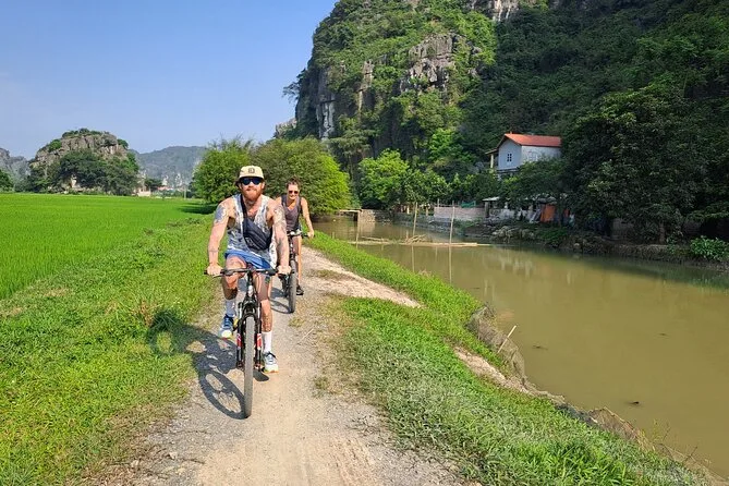 Die Tour umfasst eine Sampan-Bootsfahrt, Fahrradtouren durch Dörfer, Besuche bei Einheimischen und den Aufstieg zur Mua-Höhle oder anderen Sehenswürdigkeiten je nach gewähltem Programm.