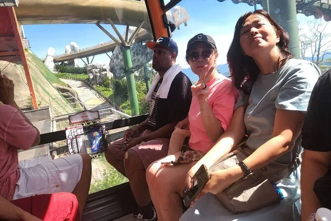 Unser Tag begann direkt am Kreuzfahrthafen – in unserem Fall Tien Sa. Es war etwas Betrieb, doch unser Guide Huy hielt ein Schild mit unserem Namen hoch, sodass wir ihn schnell fanden. Die Fahrt zu den Ba Na Hills dauerte etwa eine Stunde; ich erinnere mich, wie wir an kleinen Straßenständen vorbeikamen, die Jackfruit und Drachenfrüchte verkauften. Je höher wir kamen, desto kühler wurde die Luft – ehrlich gesagt musste ich meine leichte Jacke auspacken.