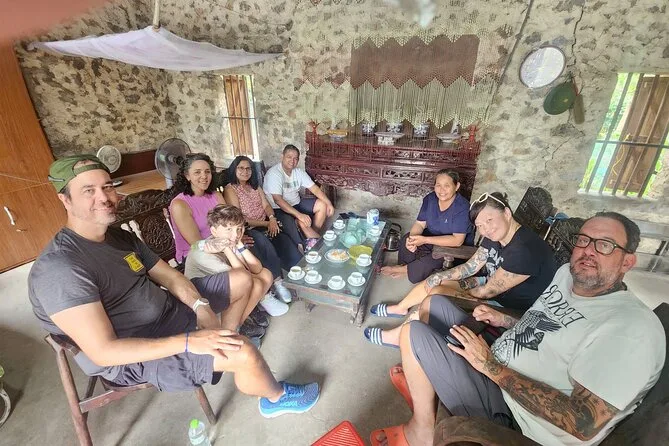 Bei Tam Coc stieg ich aufs Rad. Der Sattel war bequem genug für ein paar Stunden – kein wackliges Leihrad, wie man sie manchmal bekommt. Wir fuhren durch ruhige Dorfstraßen, vorbei an Kindern, die aus den Türen winkten, und alten Männern, die unter Banyanbäumen Tee tranken. Unser Guide Minh hielt bei einer Familie, in der drei Generationen zusammenleben. Die Großmutter zeigte uns ihren kleinen Küchengarten – überall Zitronengras – und ließ uns einen Blick in den Gebetsraum werfen. Das Haus roch leicht nach Räucherstäbchen und Holzrauch.
