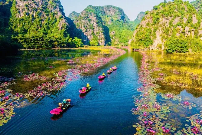 Dein Tag beinhaltet Abholung und Rückfahrt im klimatisierten Fahrzeug, alle Eintrittsgelder (Bich Dong Pagode & Bootsfahrt Trang An), drei Flaschen Wasser pro Person, Mittagessen mit lokalen Spezialitäten (vegetarisch möglich), hochwertige Sportfahrräder und einen englischsprachigen Guide, der dafür sorgt, dass du keine versteckten Ecken oder Geschichten verpasst.