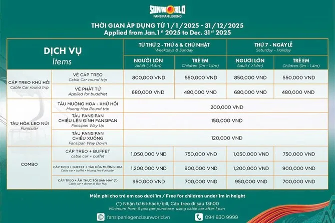 Dein Tag beinhaltet klimatisierten Transport zwischen Sapa Stadt und allen Stationen, Eintritt ins Cat Cat Dorf und Moana Sapa sowie einen englischsprachigen Guide. Das Mittagessen auf Fansipan ist optional und separat zu bezahlen – dein Guide hilft dir direkt am offiziellen Ticketschalter, damit alles reibungslos läuft.