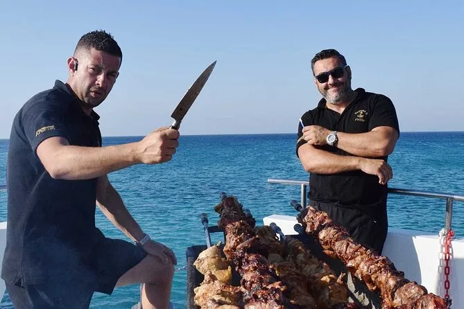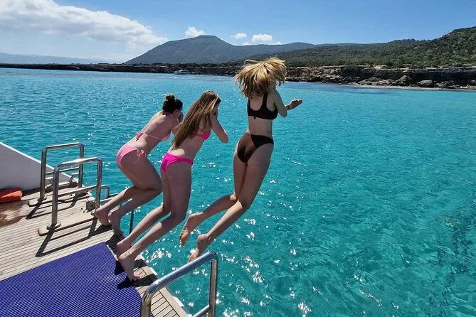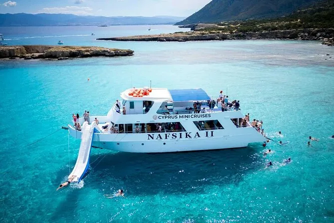Du fährst ab Latchi Hafen entlang der Küste Zyperns mit Badepausen in der Blue Lagoon und versteckten Buchten. Genieße frische Früchte, lokalen Wein oder Saft, serviert von einer freundlichen Crew, während du im klaren Wasser schwimmst oder die Wasserrutsche ausprobierst. Freu dich auf Lachen, entspannte Geschichten vom Guide und unvergessliche Momente.