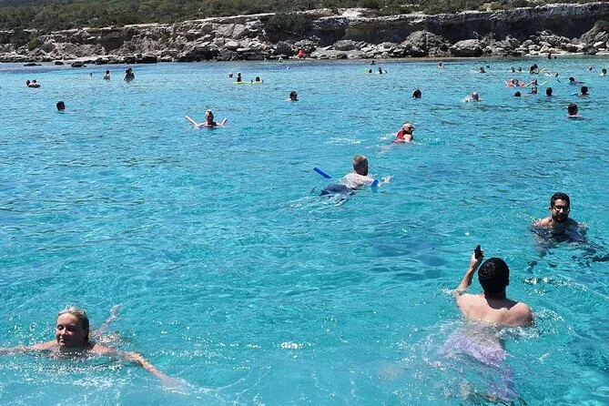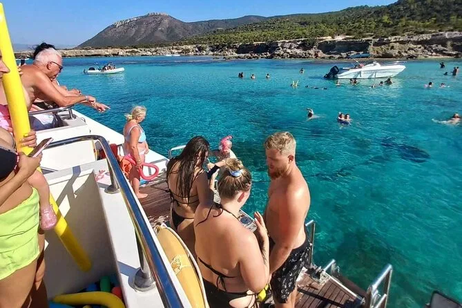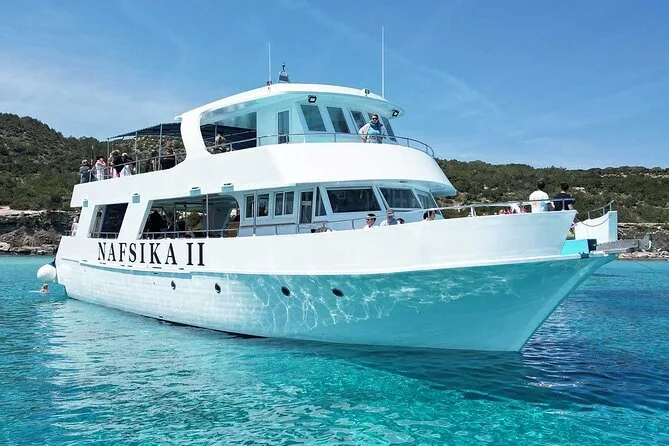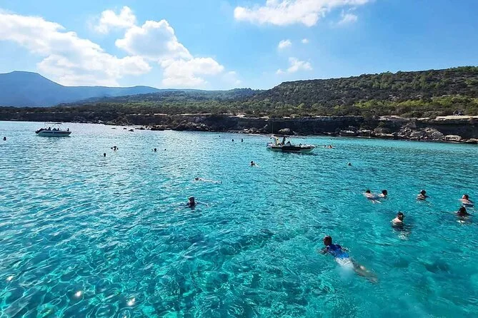 Du passierst die Aphrodite-Bäder, die Insel Saint George, die Meeresgrotten in Manolis Bay, Blaji Bay, Fontana Amoroza und natürlich die Blue Lagoon.