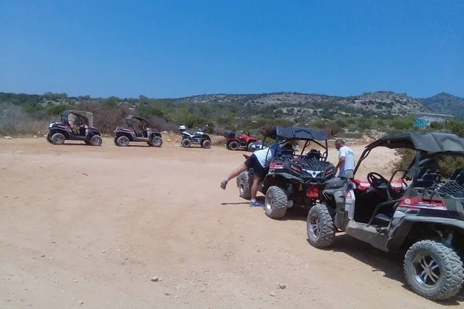 Dein Tag beinhaltet die Nutzung von Quads oder Buggys mit Schutzbrillen, kostenlosen Transfer vom Coral Bay Büro bei schneller Buchung (Hotelabholung gegen Aufpreis), sowie Begleitung durch lokale Guides an allen Stopps – von den Sea Caves über die Schildkrötenbucht Lara Bay bis zum Adonis Wasserfall (Eintritt nicht inklusive).