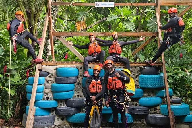 Your day includes pickup from Roseau, all necessary gear like helmets and harnesses provided at basecamp, expert guidance throughout the canyon adventure itself—including practice time—and round-trip shared transfer back at the end.
