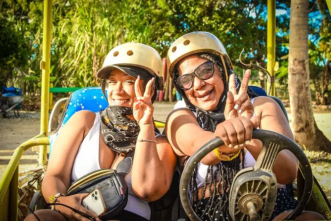 Your day includes hotel pickup and drop-off from Punta Cana hotels, a guided buggy ride through countryside trails with stops for tasting handmade Dominican coffee and chocolate plus Mamajuana liqueur sampling at a rural ranch; swimming time inside Taino Cave’s natural pool; free time to enjoy Macao Beach before heading back muddy but happy.