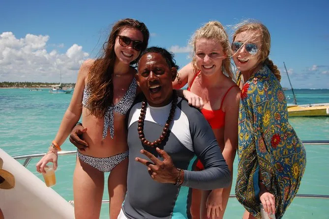 Your day includes roundtrip hotel pickup in Punta Cana, all safety equipment for parasailing and snorkeling adventures, stops at a beautiful virgin beach plus time at Bavaro’s natural pool, unlimited national drinks from an open bar along with snacks and tropical fruits onboard, music and entertainment throughout—all guided by friendly local staff before returning to your hotel later on.