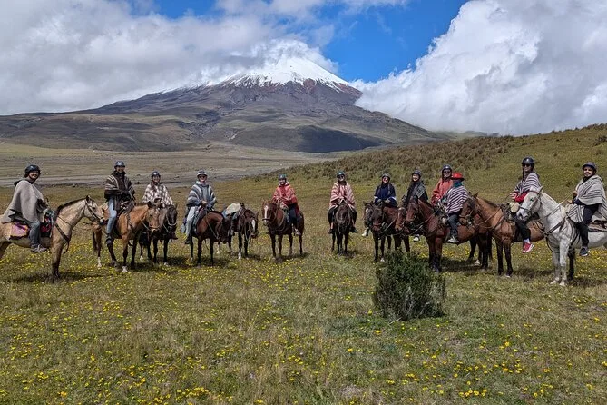 Your day includes private transportation from Quito with hotel pickup, all horseback riding equipment like helmet and poncho provided by your guide Marco (or whoever’s guiding), plus entry into Cotopaxi via a quiet local route before hiking up to base camp together. You’ll have stops for snacks or supplies along the way before returning by evening.