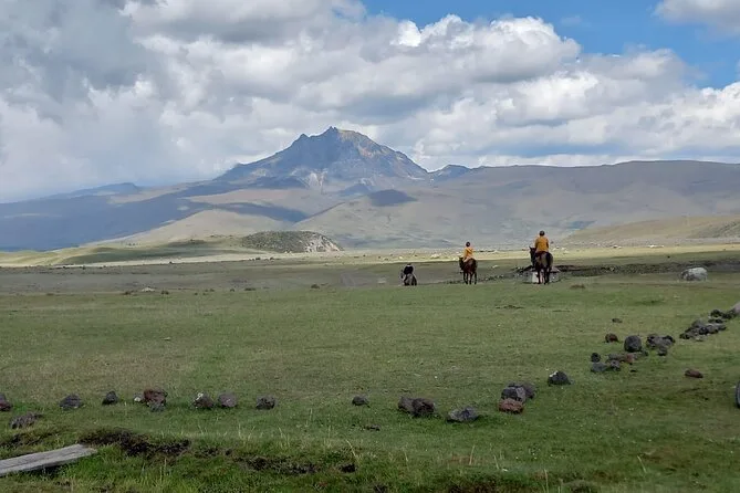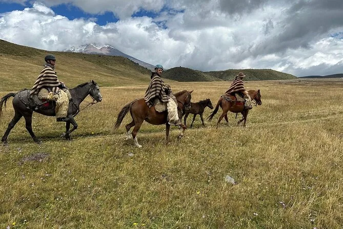 You’ll ride horseback across Cotopaxi’s windswept trails with a local chagra guide, spot wild horses beneath the volcano’s snowy peak, share a traditional lunch in good company, and walk along Limpiopungo Lagoon’s peaceful edge. It’s less about sightseeing — more about feeling part of these mountains for a day.
