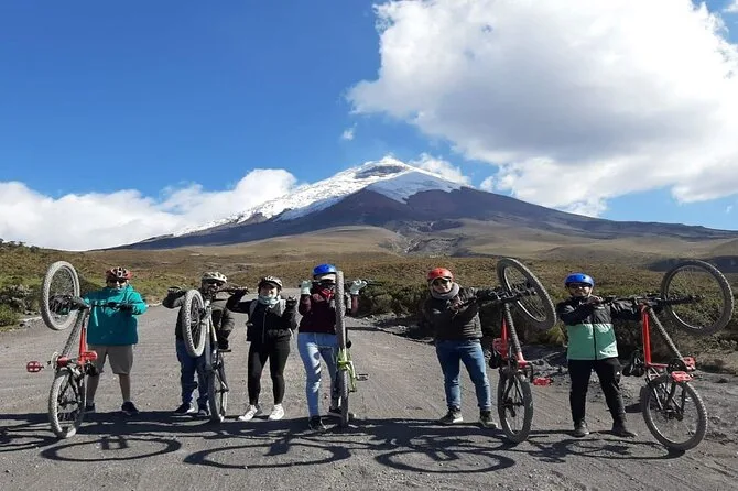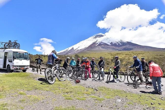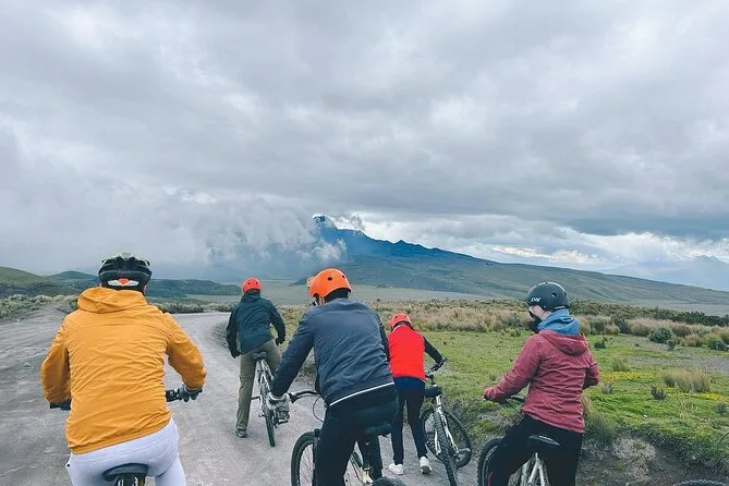 Your day includes transportation from Quito along mountain highways with acclimatization stops for breakfast and photos; entry permits; all biking equipment including helmet; guidance from a bilingual local expert throughout; plus a picnic lunch at high altitude before returning to Quito in the evening.