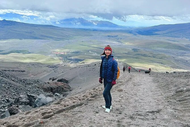 Driving into Cotopaxi felt like entering another world. The volcano itself just sits there — huge, white-capped, and way more intimidating up close than any photo. We stopped a few times so nobody got dizzy from the altitude (one guy did anyway; Andrés just gave him some advice about slow steps and chocolate). At the parking lot, we pulled on gloves and started hiking toward the refuge. The wind picked up hard here — it stung my cheeks but also made me laugh for no reason. By the time we reached 5,000 meters and saw the glacier (so close you could see little cracks in the ice), I was tired but weirdly proud. Lunch back at the refuge was simple: sandwiches, fruit, hot tea. Tasted better than it sounds when you’re that high up.