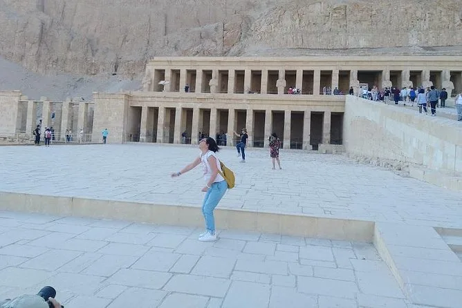 After lunch at a local spot (I can still taste that smoky baba ghanoush), we headed to Hatshepsut Temple. It’s carved right into the cliffs—hard to believe it was built thousands of years ago. I remember standing in front of those painted reliefs showing her “divine birth”—the colors are faded but you can pick out blues and reds if you look close. Ahmed explained how Anubis and Hathor each have their own chapels here, which I’d never noticed in photos before.