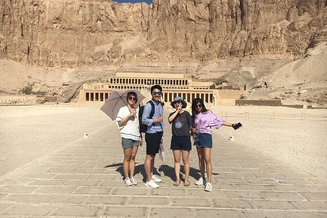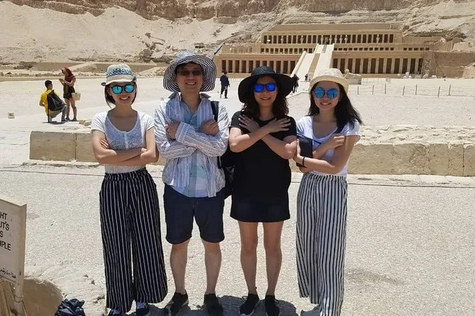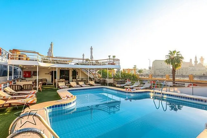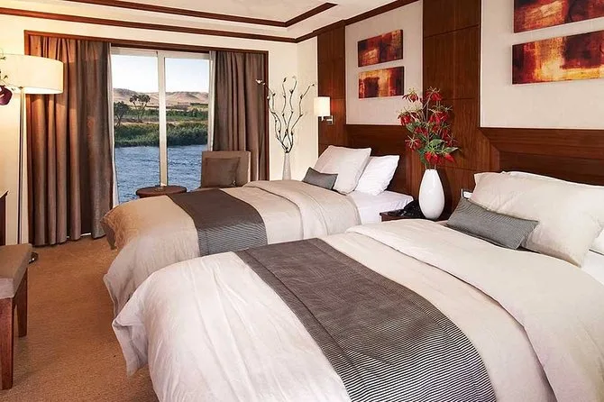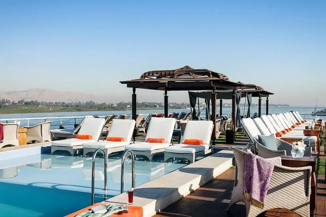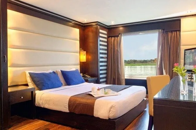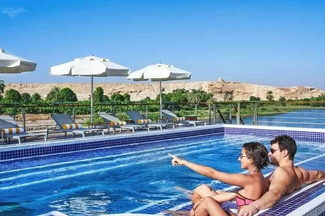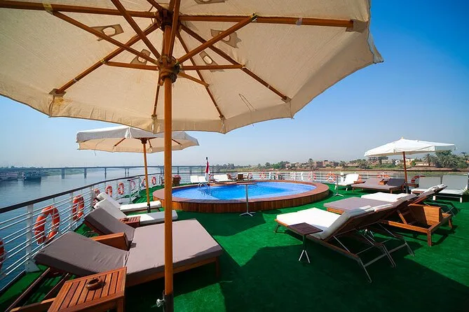 Your trip covers three nights’ accommodation on a 5-star Nile cruise (all meals included), guided visits to sites like Karnak Temple and Valley of the Kings, entrance fees as listed in your itinerary, round-trip first-class train tickets between Cairo and Upper Egypt (with an option to upgrade), horse carriage ride in Edfu, motorboat transfer in Aswan, group tour to Abu Simbel with an English-speaking guide throughout—all transfers handled door-to-door so you can just relax and enjoy every moment along the Nile.