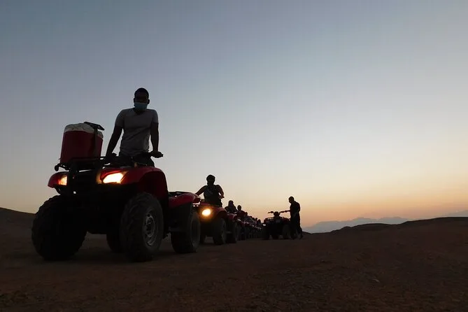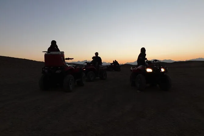You’ll race across El Gouna’s desert on quad bikes, pause for tea and shisha with Bedouins, and see ancient coral fossils inside Wadi Billy’s Dry Canyon. Watch sunset spill over stone cliffs before riding back through cooling sand, with a local guide leading every step. It’s equal parts thrill and quiet awe.